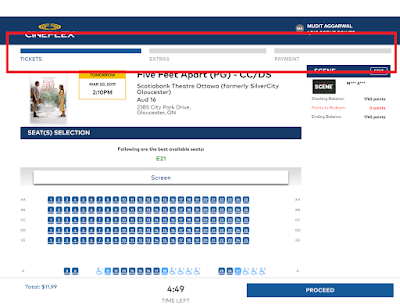 all the steps from selecting a theatre to confirming the payment for the